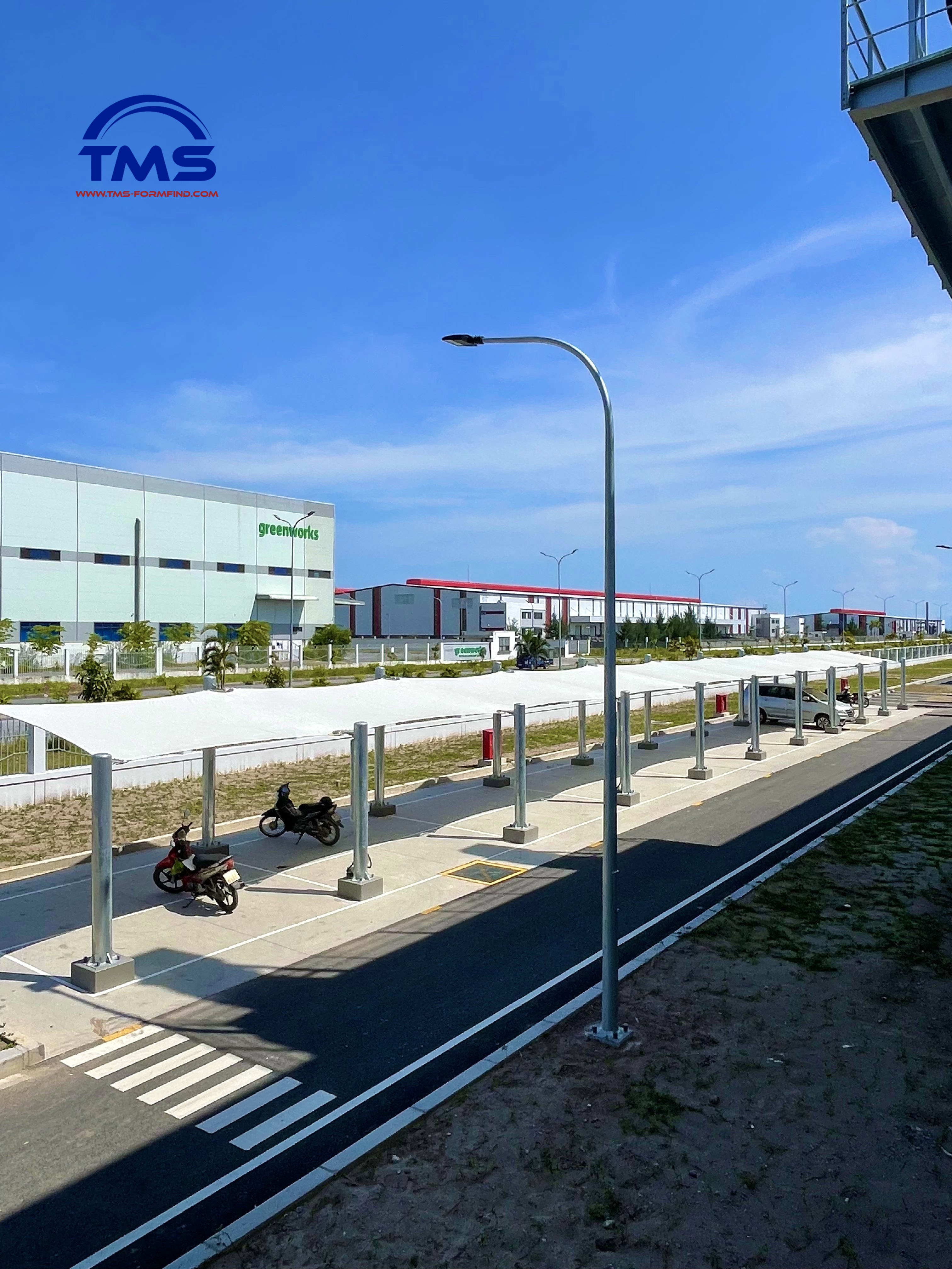 Tên dự án : Mái che bạt căng kiến trúc bãi đỗ xe bike parking tại Logicross Hải Phòng